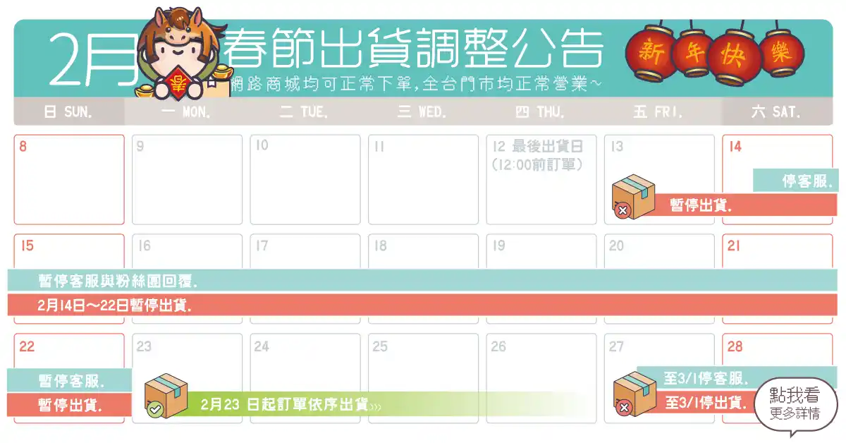 春節、228連假出貨公告
