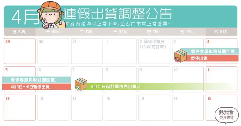 連假網路出貨時間調整
